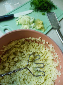 - Wymieszać kalafiora z koperkiem i cebulką, doprawić i spróbować. Mniam mniam. Teraz dodać jajka, bułkę tartą i kaszę manną. Ulepić kotleciki. Jeśli masa się rozpada, to albo trochę odczekać, albo dodać więcej bułki tartej. Obtoczyć kotlety w odrobinie bułki i smażyć w dość głębokim tłuszczu. Chłoną go na potęgę, więc po smażeniu można je odsączyć na ręczniku papierowym.